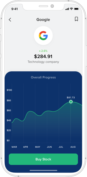 You have control over how much you invest and the frequency of your investments. Choose your stocks and we will convert your Dollars to a part of a whole share which you will own